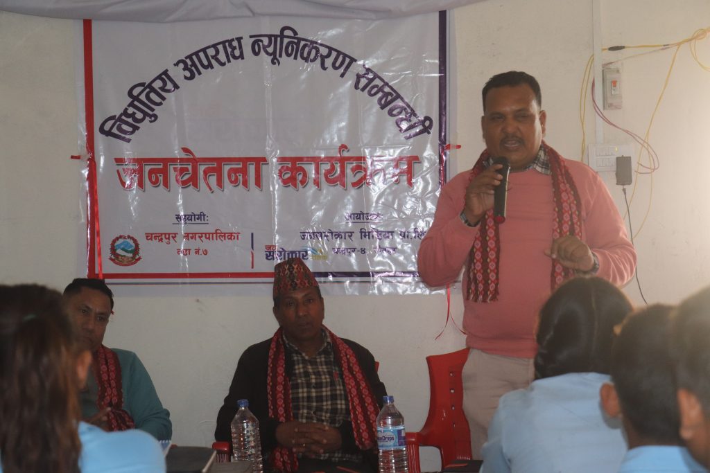 चन्द्रपुर ७ वडा कार्यालयको सहयोग तथा जनसरोकार मिडिया प्रालिको आयोजनामा सो कार्यक्रम आयोजना गरीएको हो । किशोर अवस्थामा रहेकाहरुले मोवाइल तथा बिधुतिय उपकरणहरु प्रयोग गर्ने , सामाजीक संजालमा सकृय हुने र उनीहरु लाइ जोखिमको बारेमा पुर्ण जानकारी नहुने हुदा यस्ता तालिमले सचेत गराउने कार्यक्रमको उद्देस्य रहेको आयोजकले जनाएका छन।