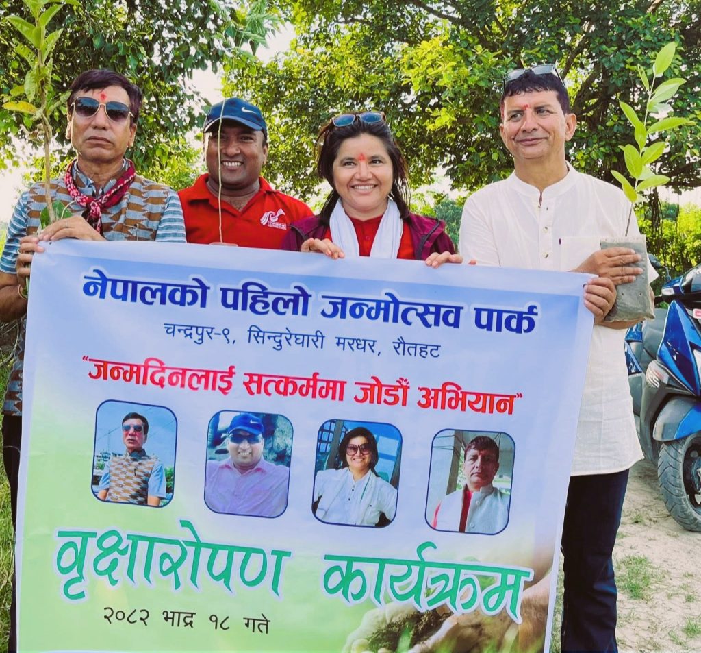 चारैजनाको संयुक्त तत्वाधानमा रैातहटको चन्द्रपुर ९ सिन्दुरेघारीमा रहेको नेपालको प्रथम जन्मोत्सव पार्कमा बिभिन्न प्रजातीका फलफुल लगायतका विरुवाहरु वृक्षरोपण गरिएको थियो । सो अवसरमा जन्मोत्सव पार्कका पदाधिकारीहरु श्याम श्रेष्ठ,महेन्द्र चैांलागाई,प्रराज चैांलागाँई,मदन सापकोटा,नवराज विष्ट,सुरेश दर्लामी, उदय भट्ट,मिरा थापा लगायतका व्यक्तिहरुको सहभागिता रहेको थियो ।