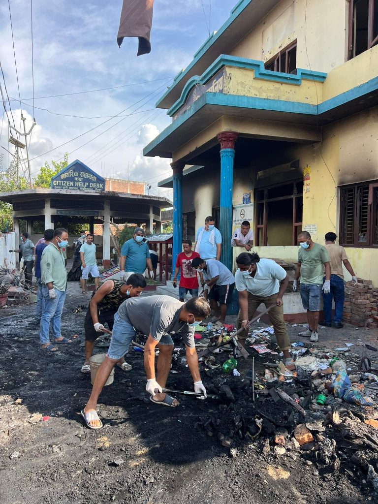 गत भाद्र २४ गते मङलबार जेन-जीको आन्दोलनका क्रममा आगलागि भएको ईलाका प्रहरी कार्यालय चन्द्रनिगाहपुर,रौतहटको भवन मर्मत तथा सरसफाई युवाहरुको अगुवाइमा सुरु भएको छ ।