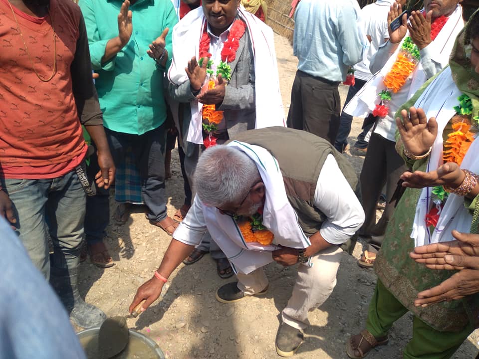करिब ४२ लाख बराबरको बाटो ढलान गर्ने योजनाको गुजारा नगरपालिकाका मेयर सन्तलाल चौधरी, उपमेयर रौशन शेख खातुन र प्रशासकीय अधिकृत जयसवालले संयुक्त रुपमा शिलान्यास गर्नुभएको हो ।