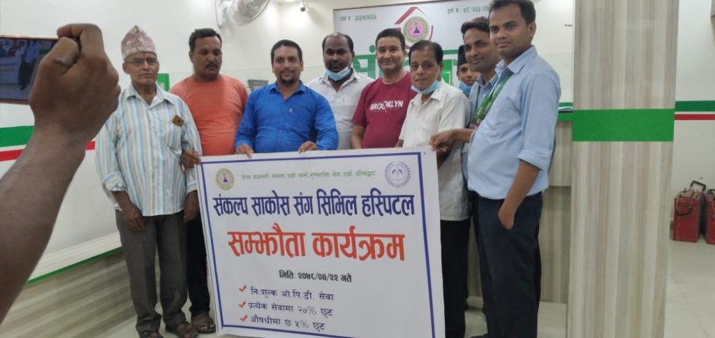 चन्द्रपुर । चन्द्रपुरमा रहेको संकल्प बचत तथा ऋण सहकारी संस्था लिमिटेड र सिभिल हस्पिटलबिच सेवामा छुट दिने सम्झौता भएको छ । सम्झौता अनुसार संकल्प साकोसका सेयर सदस्यहरुले सिभिल हस्पिटलको ओपिडि सेवा निशुल्क पाउने छ्न भने औषधि खरिदमा ५ प्रतिशत छुट र अन्य सेवामा २० प्रतिशत छुट पाइने छ । त्यस्तै न्युन आय भएका सेयर सदस्य हरुलाई सबै सेवामा ५० प्रतिशत छुट पाउनेछ्न । शुक्रबार संकल्प साकोसका अध्यक्ष बिभु पोखरेल र सिभिल हस्पिटलका प्रशासकीय अधिकृत राजन कुमार साहले सम्झौतामा हस्ताक्षर गर्नुभएको हो ।